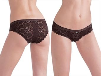 Sumptuous stretch lace lends an air of Victorian romance to these bikini panties. Elastic waistband is embossed with signature "Emporio Armani" logo. Panty made of sexy, see-through, stretch lace. Non-elastic leg openings have laser-cut edges for no panty lines. Seamed at center back to showcase natural definition of derriere. Flattering hi-cut styling. Bikini panties provide moderate rear coverage. Please note: Model is wearing thong for modesty.